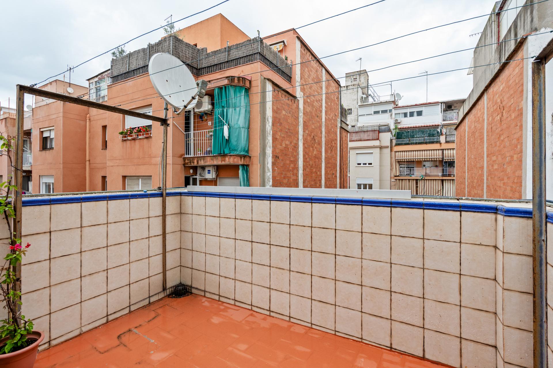 Piso en venta con terraza y solárium privado 365.000 Superficie construida: 83 m Espacios exteriores: Terraza-solárium privativa de 34 m en la cubierta, accesible desde el ascensor Distribución: 3 dormitorios (1 suite con baño privado y vestidor, 2 individuales) Baños: 2 (uno con ducha y otro con bañera) Vecindario: Solo 4 vecinos en la finca Presentamos este piso en excelente estado, ubicado en una finca con ascensor en una zona tranquila de Santa Eulàlia, L Hospitalet de Llobregat. La vivienda ofrece una distribución funcional y espacios bien aprovechados: Salón-comedor con salida directa a un balcón que aporta ventilación y conexión exterior. Cocina tipo office, independiente, amplia y con salida a una galería cubierta de buen tamaño. Tres dormitorios, incluyendo una habitación principal tipo suite con baño privado y espacio de vestidor. Dos baños completos, uno equipado con bañera y otro con plato de ducha. Entre sus características destacan: aire acondicionado por split, suelos de terrazo y carpintería exterior de aluminio con doble acristalamiento (Climalit), que garantizan confort térmico y acústico. El gran atractivo de esta propiedad es su terraza-solárium privada de 34 m , situada en la cubierta del edificio, a la que se accede directamente desde el ascensor. Actualmente consta de un espacio acondicionado como salón y un trastero, fácilmente desmontables sin necesidad de obra. Un lugar exclusivo para disfrutar al aire libre con total privacidad. Ubicación privilegiada Situado en el barri