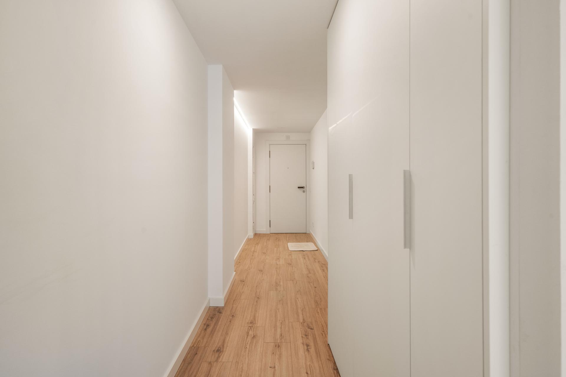 Entre sus prestaciones destacan la climatización por aerotermia con aire frío y caliente por conductos, suelos de parquet natural, puertas lacadas en blanco y carpintería exterior de aluminio con doble cámara, garantizando el máximo aislamiento térmico y acústico. La vivienda es extraordinariamente luminosa y dispone de certificado energético A/A, reflejo de su eficiencia y sostenibilidad.